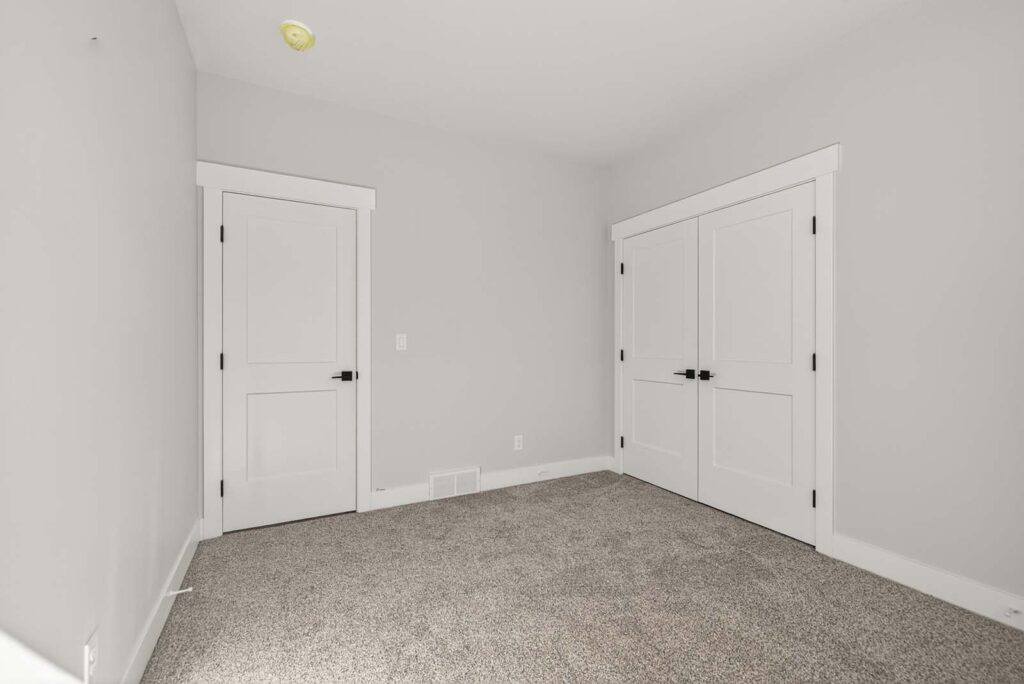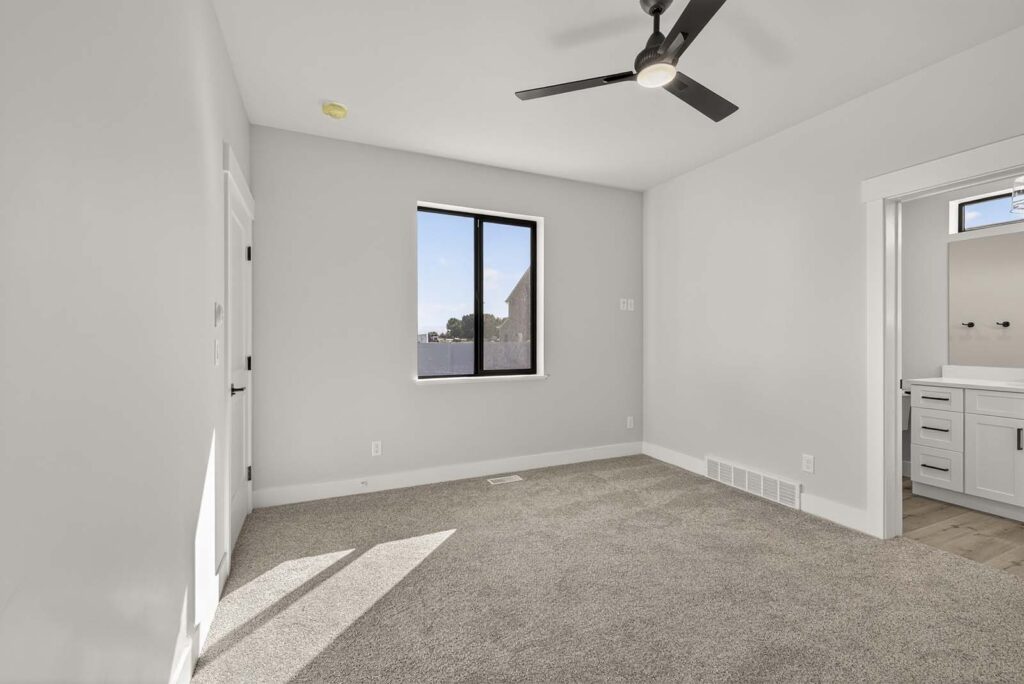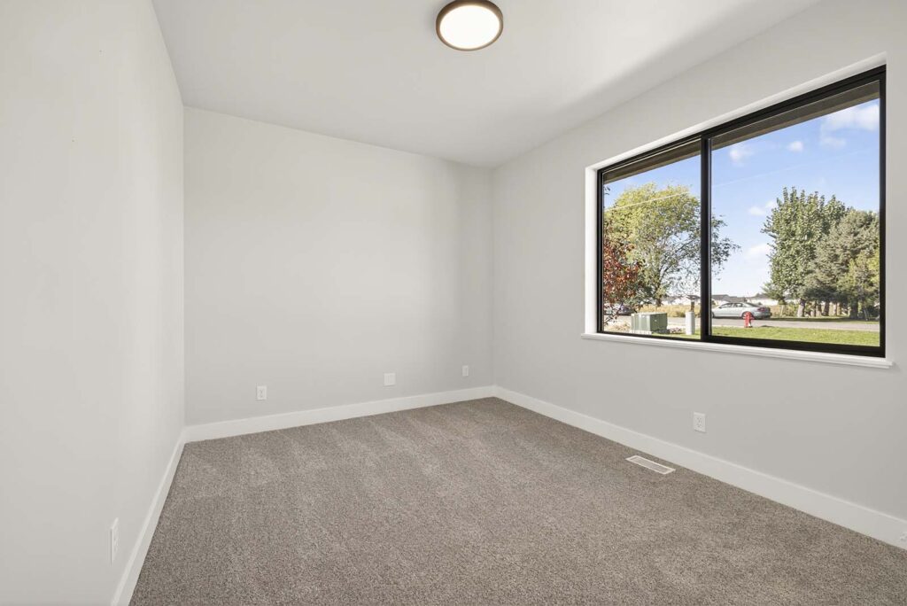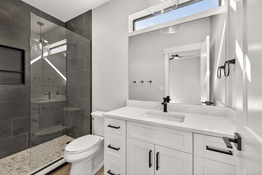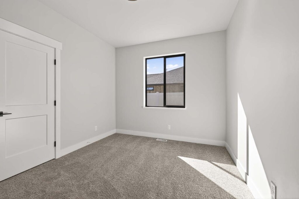 Designer Contrast: Crisp, light grey walls paired with bold black window frames and hardware create a sophisticated, high-end look.